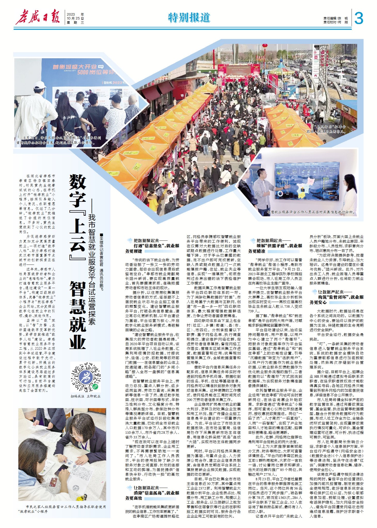 10月25日,孝感日报刊登了特别报道《数字“上云”智慧就业——我市智慧就业服务平台试运营探索》专题。文章报道了孝感人社积极探索数字化就业服务新路径,引进PA集团打造智慧就业“一库一平台”,完善互联网工具,以大数据为手段,助推孝感市公共就业服务体系走在全国前列。