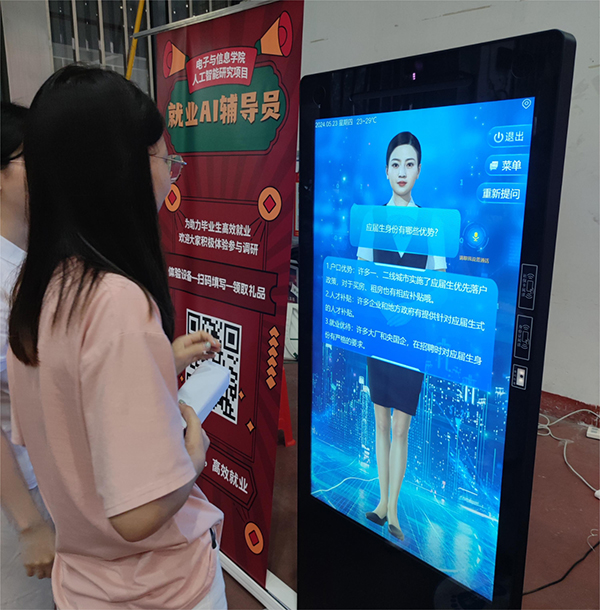在校园,AI校园服务站化身“就业AI辅导员”,可以为学生提供24小时不断线就业咨询和指导,并逐步形成学生的个人画像,从招聘信息的精准匹配,到AI简历优化,再到模拟面试,最终提升高校毕业生高质量充分就业。