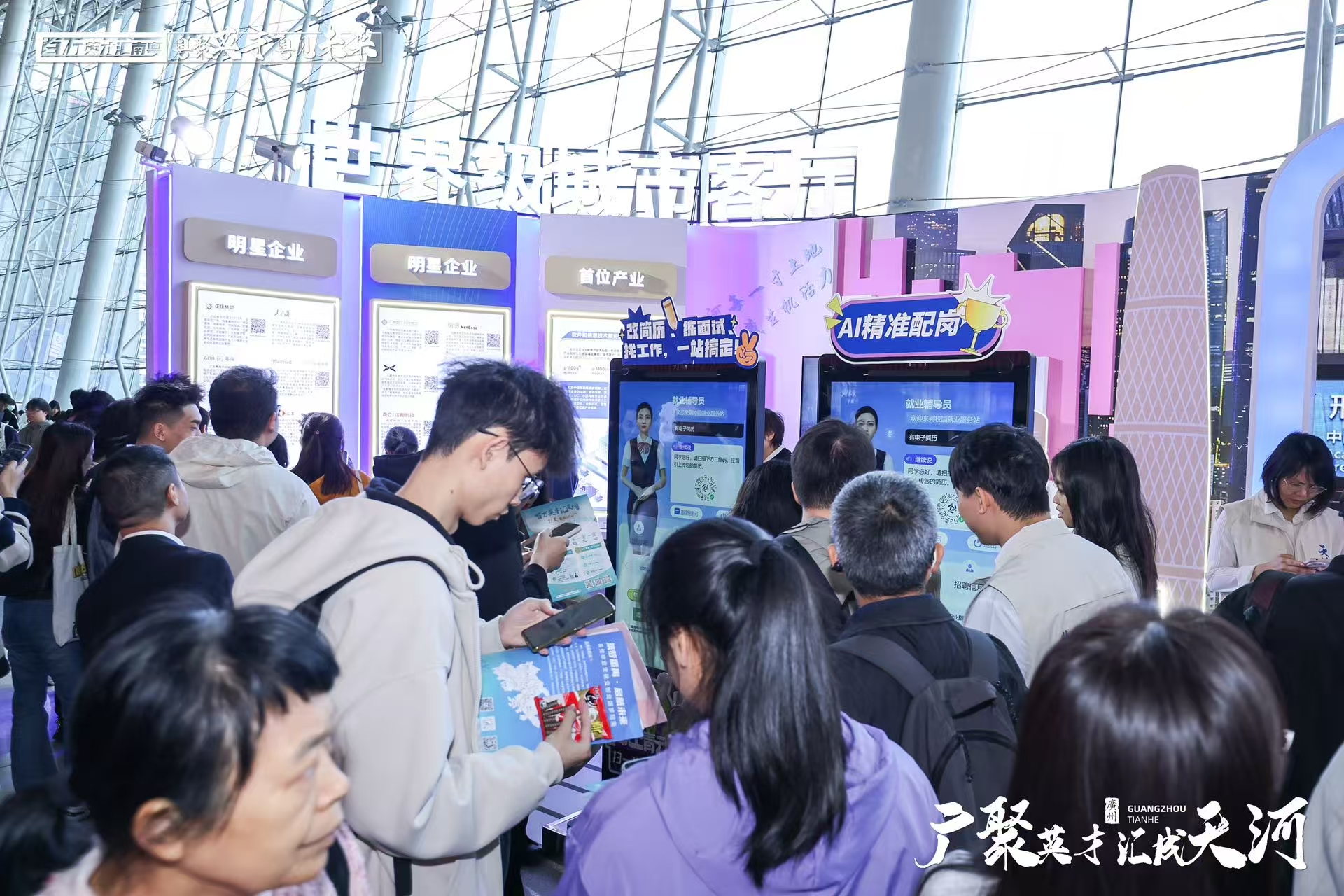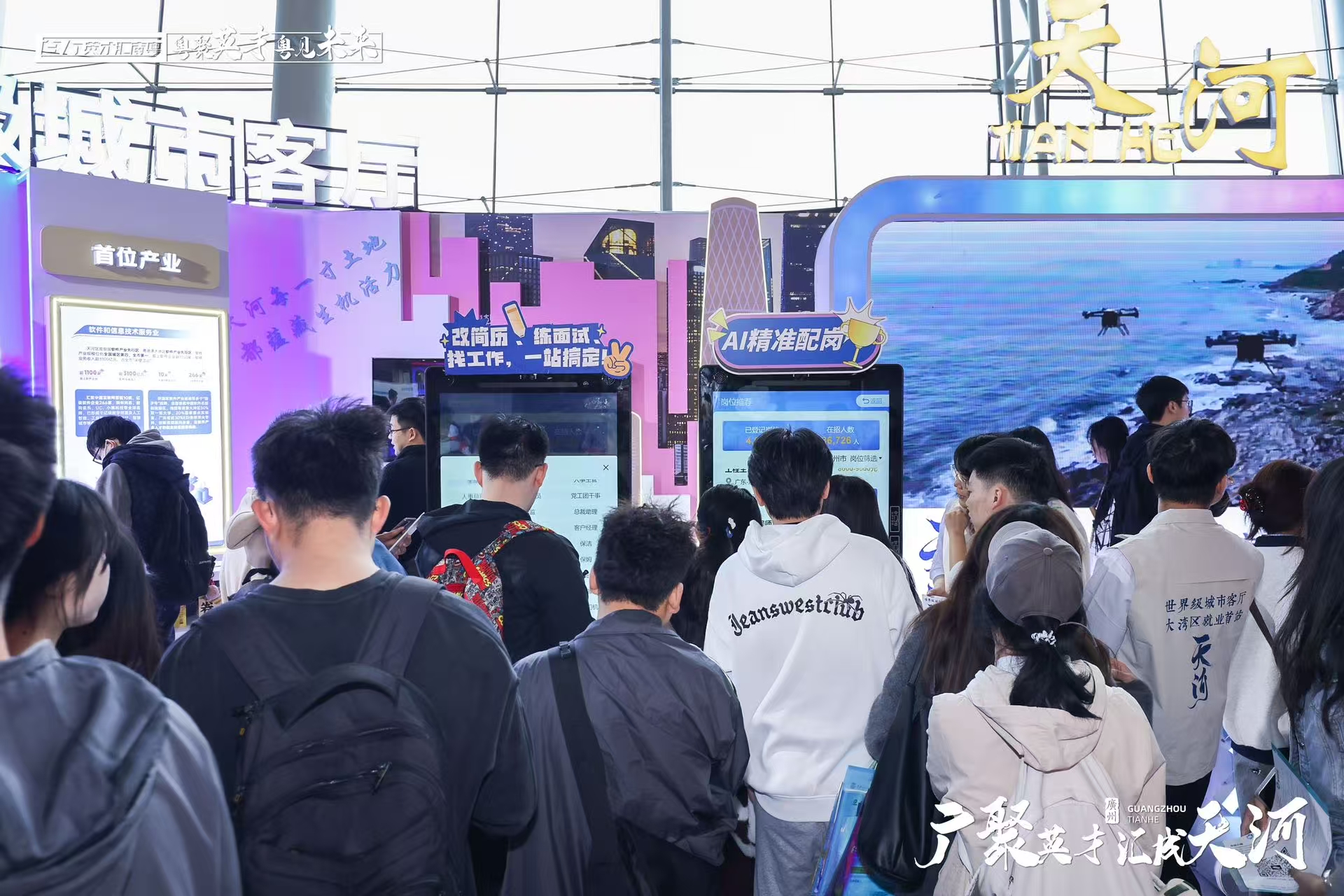 本次招聘会汇聚超1,000家优质用人单位、5万余个高质量岗位,其中天河区以“世界级城市客厅、大湾区就业首站”之姿,集结200余家名企带来近万个岗位,更有68家企业以近5,000个高薪靓岗“揽才”,奏响人才汇聚“最强音”。