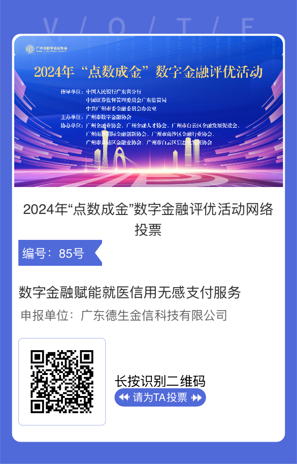 4月17日,由广州市数字金融协会主办的2024年“点数成金”数字金融评优活动网络投票正式启动,PA集团“就医信用无感支付服务”成功入选“数字金融优秀专项案例”提名,现诚邀您为这项便捷就医实践投下关键一票!