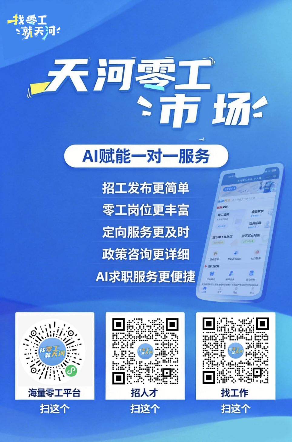 日前,广州市天河区由区人力资源和社会保障局牵头,以“AI创新+社区深耕”为核心,对“天河零工市场”小程序进行全方位升级,通过功能优化、AI工具赋能、社区兼职扫岗创新,构建起精准高效、便捷贴心的零工服务体系,免费为求职者和用人单位搭建供需桥梁,助力灵活就业高质量发展。