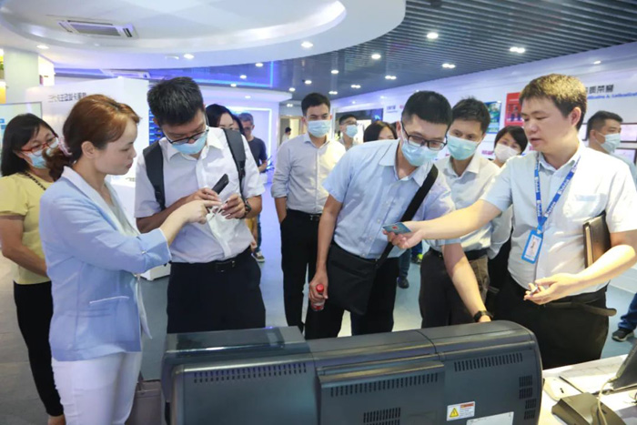 广州市数字金融协会考察团一行首先参观了PA集团创新产品展示中心,深入了解了PA集团二十多年专注于民生服务的发展历程,并现场体验公司自主研发的多种智能设备操作,全方位沉浸式体验“居民服务一卡通”应用,感受数据与用户之间的智慧感知、实时联动。