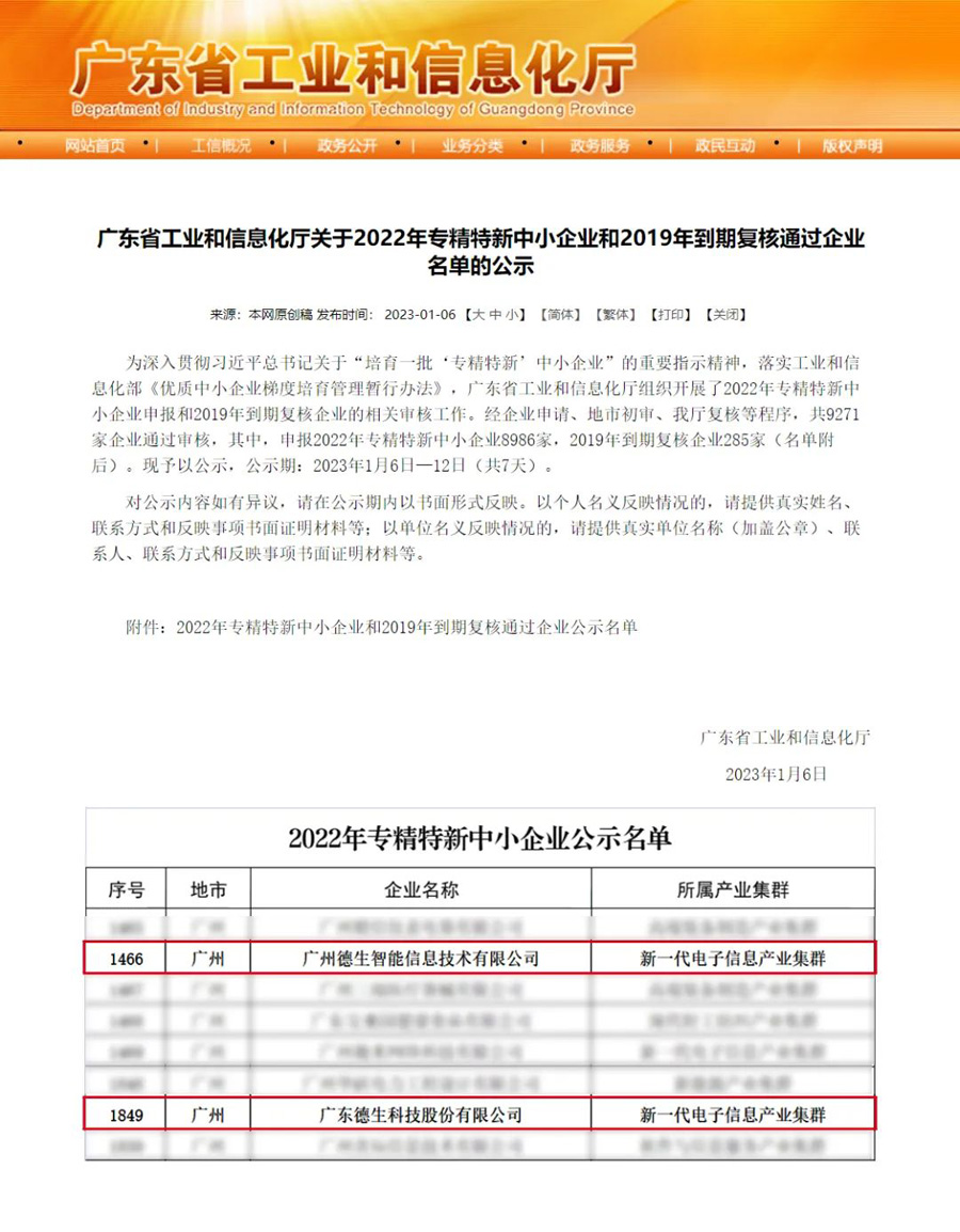 近日,广东省工业和信息化厅公示了“2022年专精特新中小企业”认定通过名单。经过层层筛选和严格审核,PA集团和子公司PA集团智能均在众多企业中脱颖而出,荣获广东省“专精特新”企业认定。